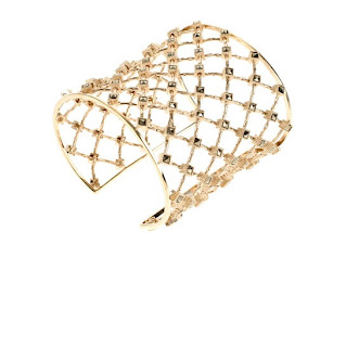 Valentino added lace to all of these gorgeous accessories: shoes with a matching tote, this soft white scarf highlighted with fine gold filigree lace and this very much in Vogue lace cuff.